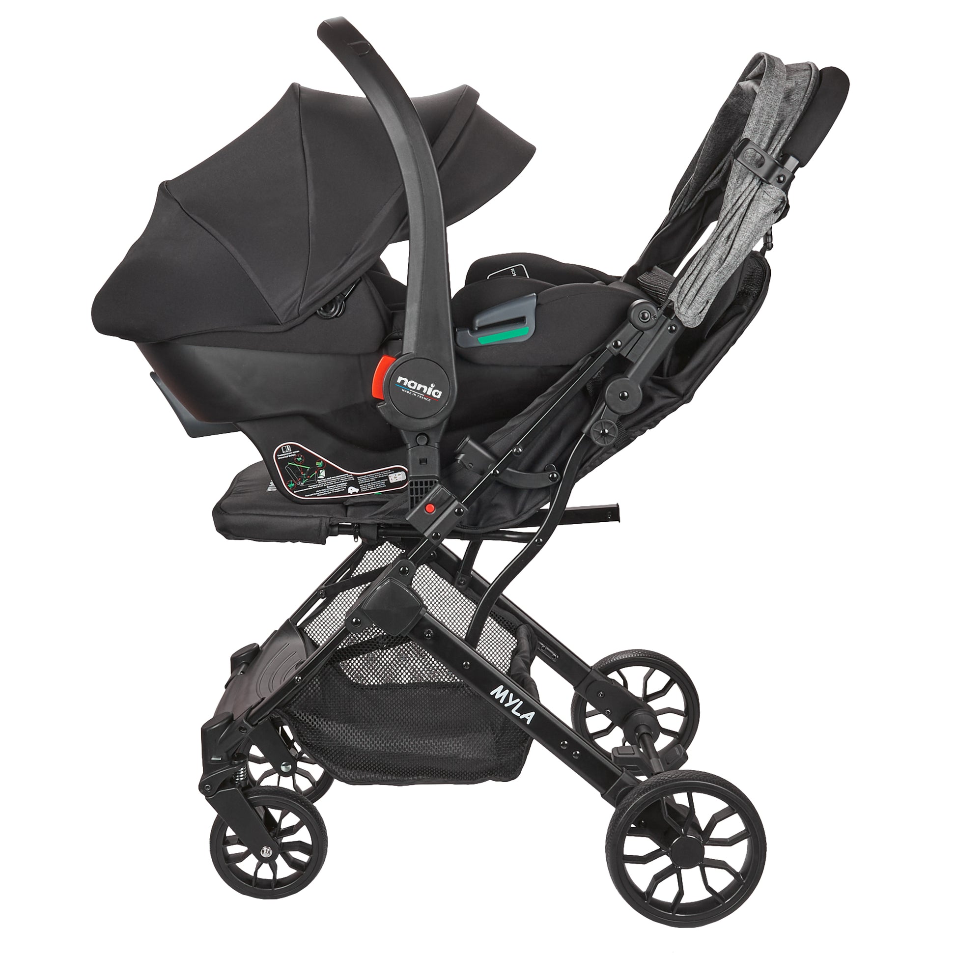 Nania Myla Poussette combinée 2 en 1 de 0 à 4 ans (22kg max) avec Siège auto Rimini Nania 40-87 cm - (0-13kg) + Base isofix-