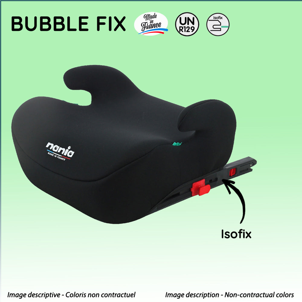 Nania – Rehausseur siège auto enfant fixations isofix BUBBLE FIX 126-150 cm R129 i-Size – De 8 à 12 ans – Fabrication Française – Installation de l'enfant avec la ceinture de sécurité (Noir)