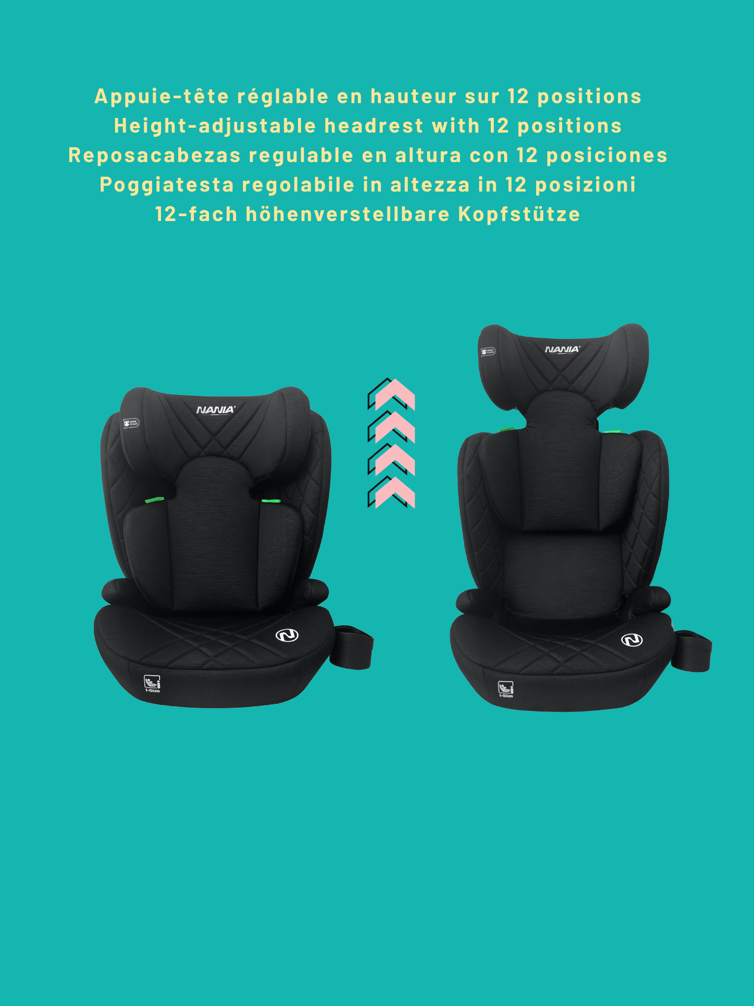 NANIA Siège auto enfant Isofix Bari I-size 100-150 cm-Appui-tête Réglable- Porte gobelet
